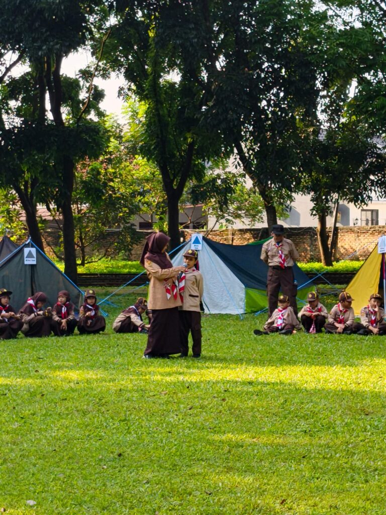 DEPOK – Sebanyak 143 peserta didik dari kelas 2 dan 3 SDIT Almuqorobin yang tergabung dalam Pramuka Siaga mengikuti kegiatan Perkemahan Sehari (Persari) di kawasan wisata edukasi Ka Alam Kabeda, Beji, Kota Depok, Sabtu (26/10). Mengangkat tema “Berani, Mandiri, dan Berprestasi”, agenda ini dirancang untuk memperkuat karakter kepanduan sekaligus menumbuhkan kecintaan mendalam terhadap kelestarian alam sejak usia dini.